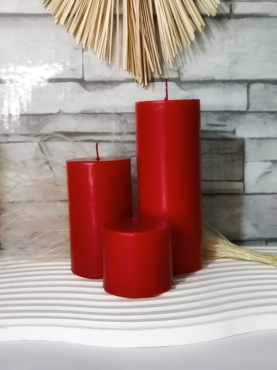 شمع استوانه سرتخت مهتاب قطر 6 سانت ست 3 عددی قرمز