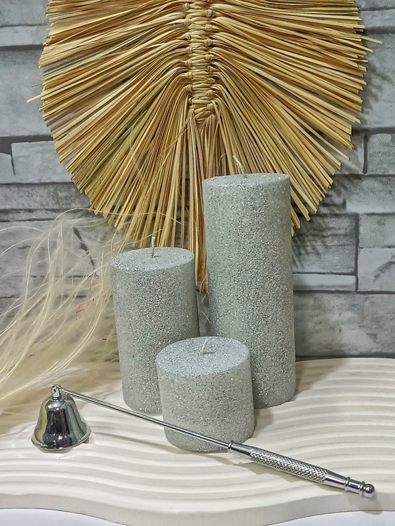 شمع مدل استوانه قطر۶سانت اکلیلی مجموعه ۳عددی نقره ای
