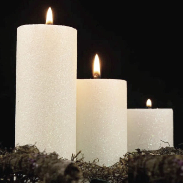 شمع مدل استوانه قطر۶سانت اکلیلی مجموعه ۳عددی سفید