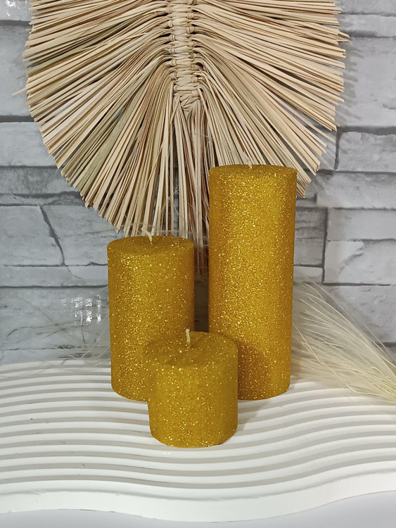 شمع مدل استوانه قطر۶سانت اکلیلی مجموعه ۳عددی طلایی
