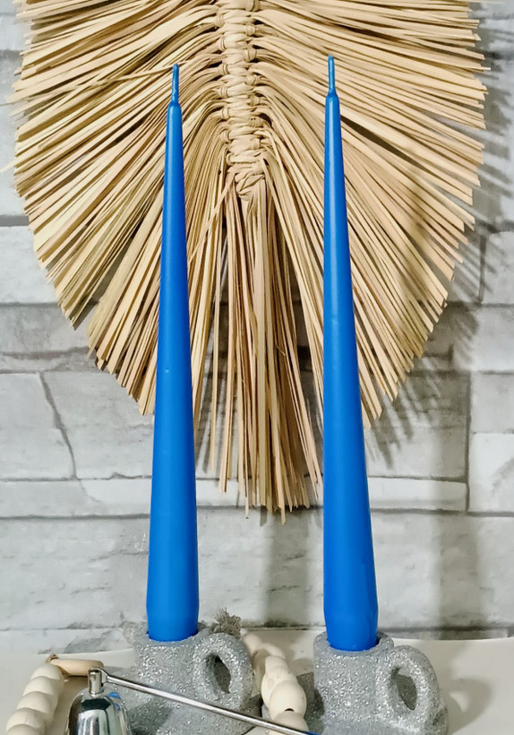 شمع قلمی نوک تیز (سوزنی) ۳۰ سانت بسته 14 عددی آبی کاربنی