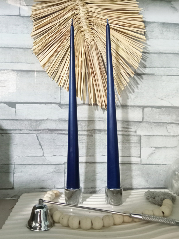 شمع قلمی نوک تیز (سوزنی) ۳۰ سانت بسته 14 عددی سورمه ای