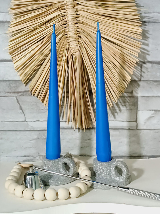 شمع قلمی نوک تیز (سوزنی) ۲۰ سانت بسته ۱۲عددی آبی کاربنی