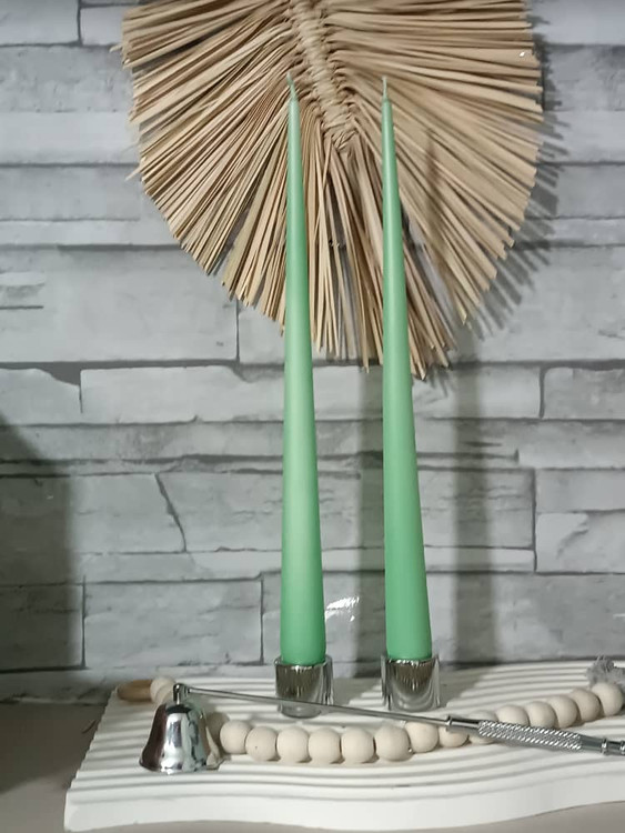 شمع قلمی نوک تیز (سوزنی) ۳۰ سانت بسته 14 عددی سبز ماچا